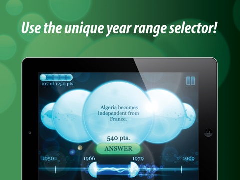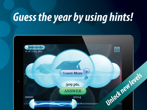 When was it? Travel through time, and get challenged on your knowledge in this new exciting quiz game! Do you remember when did the Berlin Wall come down, or when was the first iPhone launched? Use the unique year range selector to guess the specific year with help from the hints!
