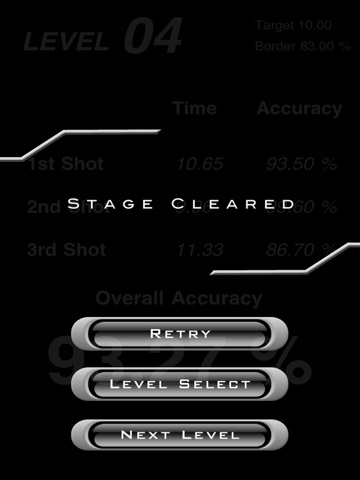 ◉25 levels: After 3 shots, total accuracy will be calculated. Pass the border line assigned for each stage to advance to the next level.