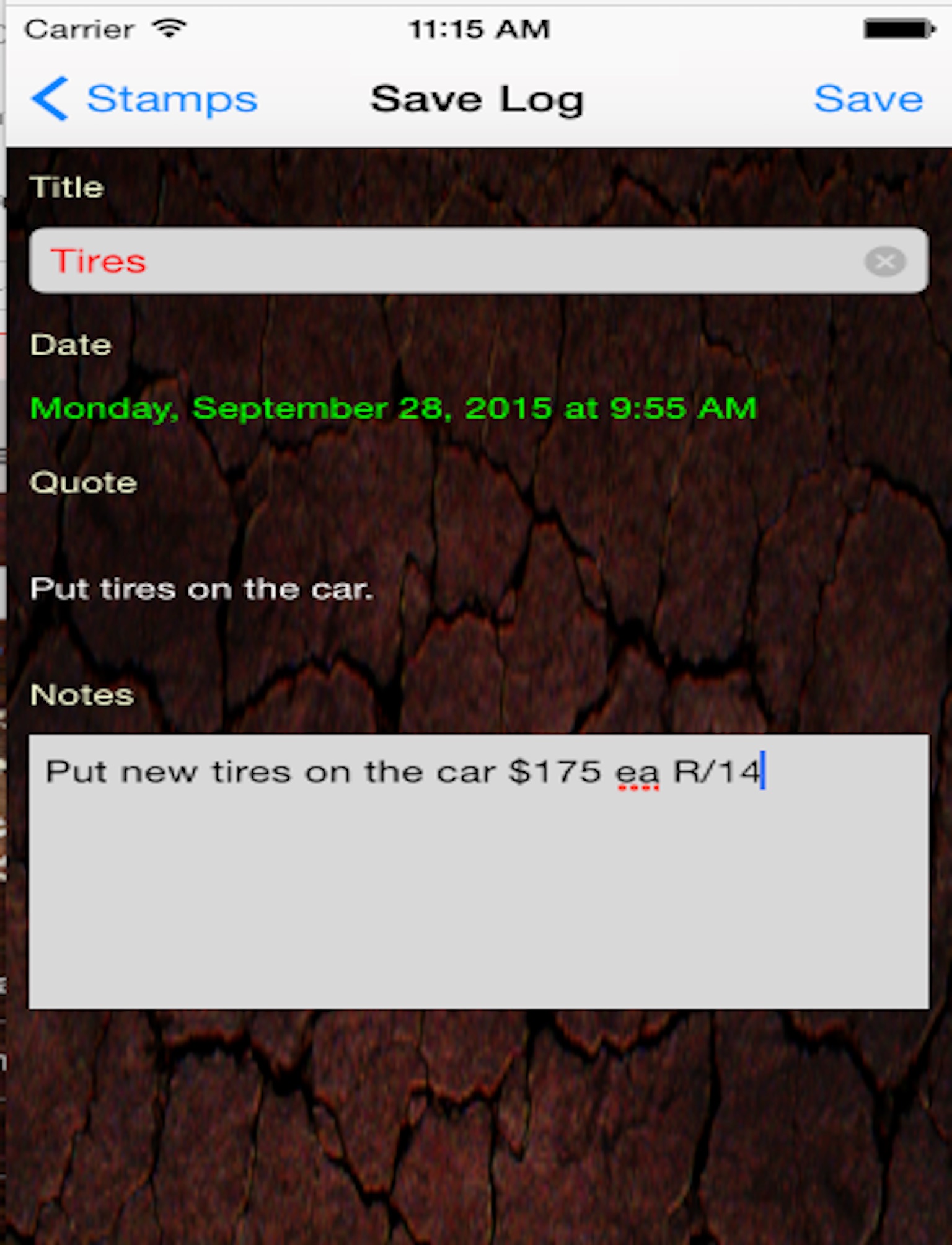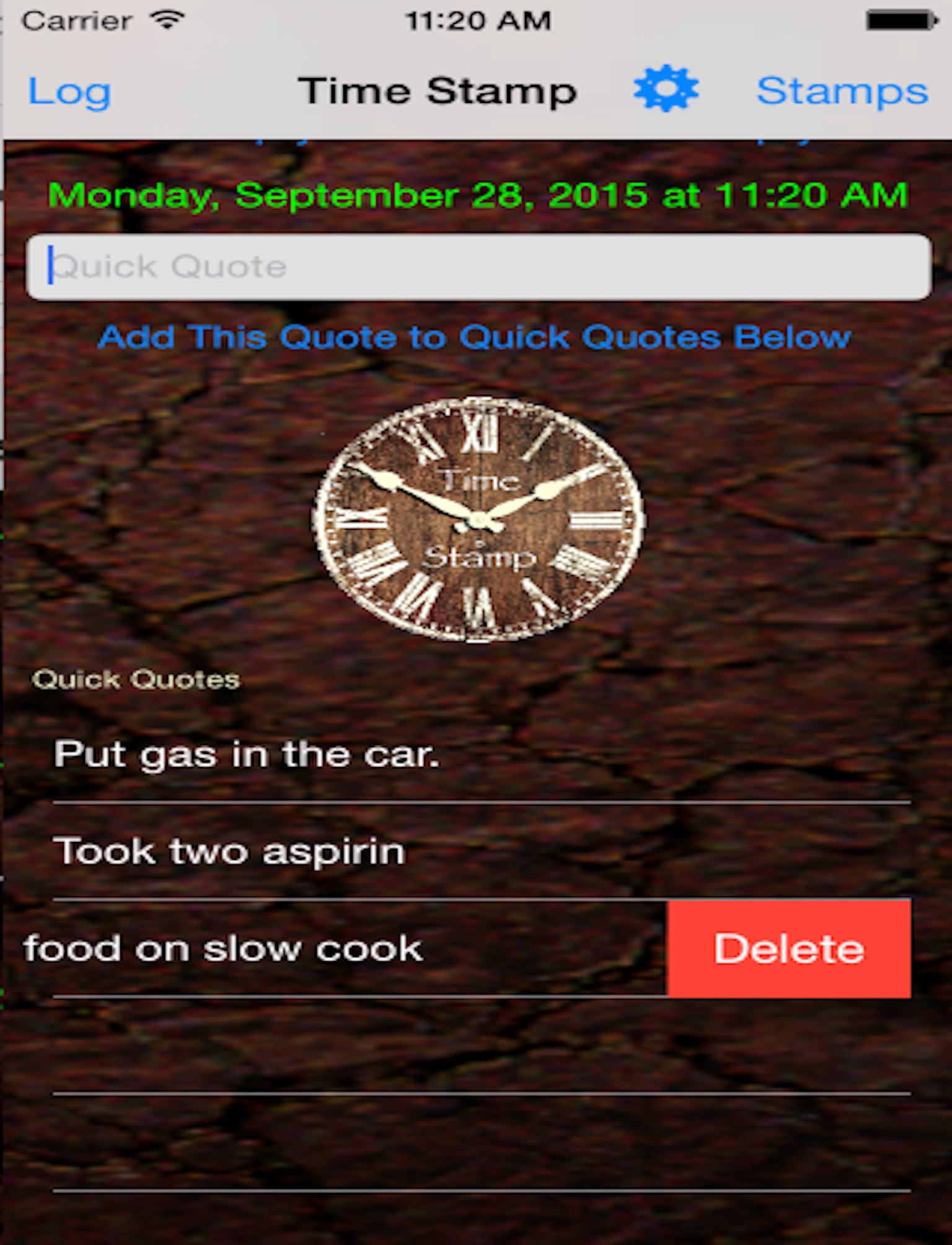 This is a simple way to note what time you did something. Use it to log what time you start and finish work, took medicine or when you put tires on your vehicle. Use it for anything you want to remember what Date and time you did something. No graphs No Charts Just simple.