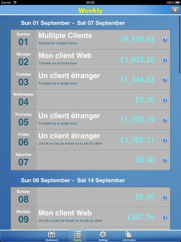 See your hours worked at a glance, separated into day, week and month.