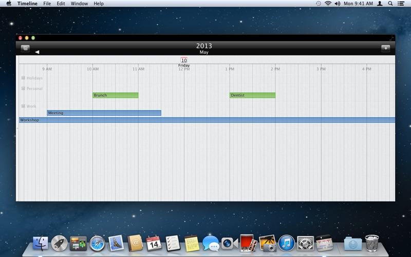 Timeline Calendar presents your built-in calendar as a timeline in a visual and intuitive way. Zoom in - see the details. Zoom out - get the big picture.