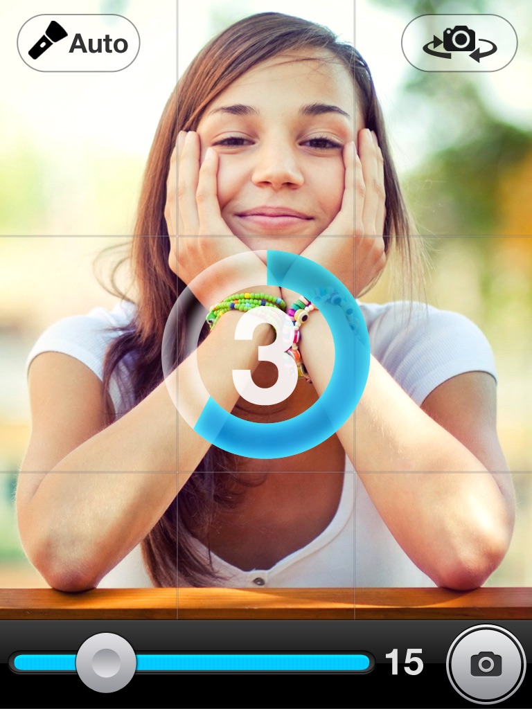 Timer Auto Camera can take photos very easily with self timer. It is the easiest way to take photos of a group or scene, families or friends, a travel self-portrait or selfie. You can set the timer simply with a slider. Once you are taking the photo it will let you edit it with plenty of editing options. The edited and captured photos are automatically saved to the camera roll. You can edit captured photo afterwards as well.