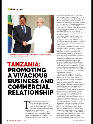 THE TIMES OF AFRICA, an international monthly business magazine, started with an aim of “Bringing Africa to the World.” The prominence in the diplomatic and corporate divisions of India together with the African continent inculcates us with an ecstatic essence and leads us to establish by morality of substantial staging of reliable content and thrive in making successful in-roads to the reading desks of people. By the virtue of meaningful presentation of credible rich content on Africa-India partnerships, socio-economic issues, business and investment opportunities, political developments, cultural extravaganzas have allowed us to succeed in making successful brand identity in the country and outside. Personality rendezvous, interviews with Ambassadors/High Commissioners and country specific spotlights are other special attractions.
