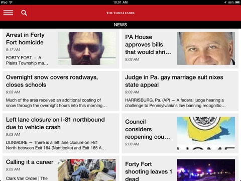 The Times Leader iPhone or iPod Touch Application gives you access to the latest local and national headlines, and sports, all in the palm of your hand.