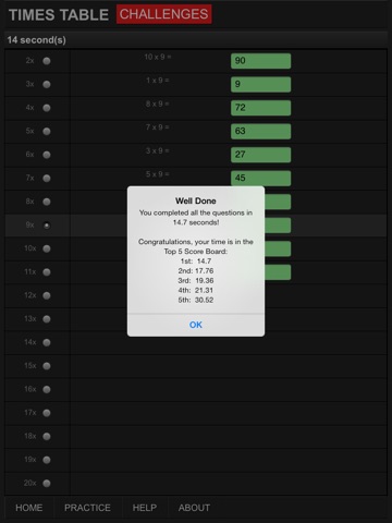 Kids Times Table Challenges is a creation of Inidimman Consultants who create educational applications for children of school age. These Times Table Challenges are designed to reinforce mathematical learning by improving the speed and accuracy of childrens mathematical calculations. These calculations are the building blocks for a wide variety of mathematical disciplines and for solving mathematical problems.