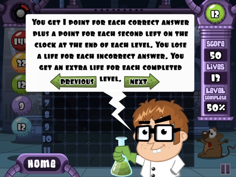 This is a lot of fun and the kids dont even know theyre learning. Thanks. Only change I would ask for (well, maybe two changes): 1) give kids the chance to select the level they want to play (including tables lower than 5x); 2) allow multiple players to save their levels and go back to continue advancing through the levels at their own rate. LOVE this app (I think Ill be playing more than the kids).