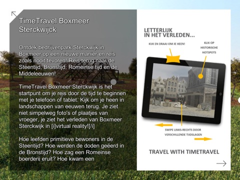 TimeTravel Boxmeer Sterckwijk is het startpunt om je reis door de tijd te beginnen met je telefoon of tablet. Kijk om je heen in landschappen van eeuwen terug. Je ziet niet simpelweg foto’s of plaatjes van vroeger, je ziet het verleden van Boxmeer Sterckwijk in virtual reality!
