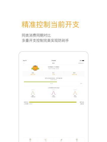 分类饼图、柱状图以及收支折线图,完美的统计金钱流向,让每一笔消费都有据可查。此外,还支持多账本记账、预算提醒、多币种自由切换等丰富功能。