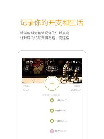 首创时间轴记账法,流畅动态效果、流水统计,账目组织简洁清晰,告别复杂和枯燥。