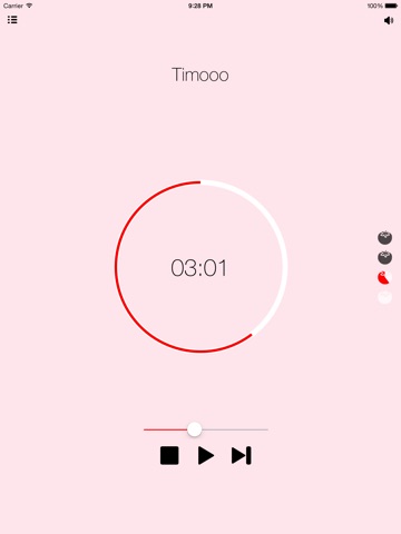 Timooo is a simple but powerful application for getting up-to-date with your Pomodoro Technique timetable. It is absolutely free: no annoying ads or begging to buy a pro version. You can use everything for unlimited time!
