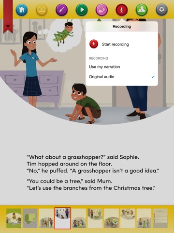 In this narrative, Tim needs to make a green costume to wear to a party. He and his family think of and reject a series of ideas until at last Tim comes up with an idea for the perfect costume.