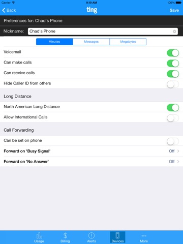 * Set usage alerts or even hard caps for voice, SMS and / or data usage on your account or an individual device.