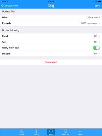 The official Ting app lets you take total control of your Ting cell phone account. The Ting app for iPhone and iPad lets you manage every aspect of your Ting service and the individual devices on your account. The Ting app also gives one-tap access to our awesome customer service team.