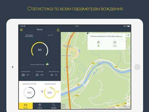 Приложение позволит Вам в режиме реального времени отслеживать и контролировать свой стиль вождения.
