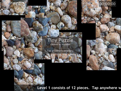 Tiny Puzzle Lite allows you to get the feel of Tiny Puzzle, offering the first 5 of the 24 levels. The first level serves up a simple 12 piece puzzle. With each advancing level the number of piece increase. On level 24, the puzzle consists of a whopping 2,800 tiny pieces!