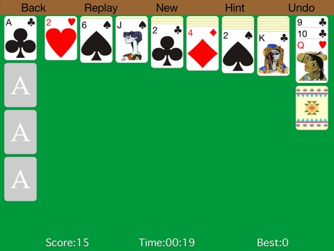 This Solitaire is very small, but very functional, it support portrait and landscape orientations, support for draw one, draw two and draw three, support hints, undo, autosave, timing, scoring, statistics and so on.