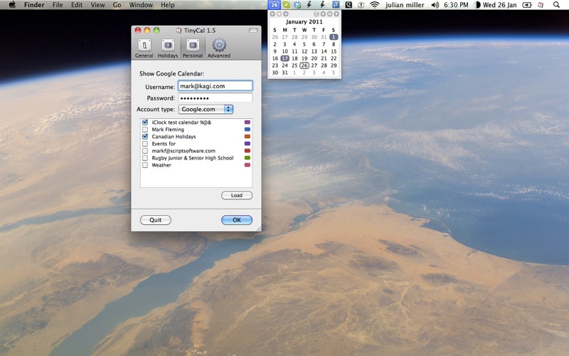 TinyCal is a menubar calendar with Google Calendar integration. It can show multiple months, use custom calendars, and show holidays and personal calendars. Simple, easy to use and unobtrusive TinyCal has many useful features.