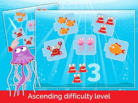This game is intended for toddlers aged 3+. The game presents 12 boards each focused on developing a set of basic concepts such as size, colors, numbers and patterns using everyday objects from the childs world such as clothes, food and many more.