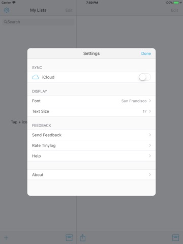 Tinylog is a minimal todo app for iPhone and iPad.