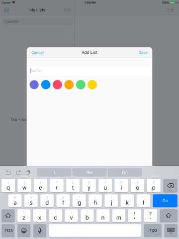- Create a new list by tapping Plus icon at bottom left