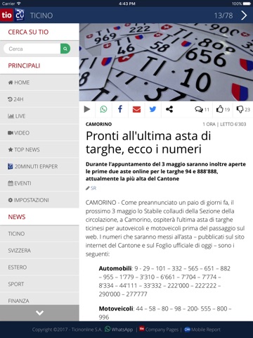 Gli articoli di tio con tanto di immagini e video, segnalazioni, risultati sportivi e lepaper di 20minuti tutti racchiusi in ununica applicazione.