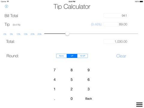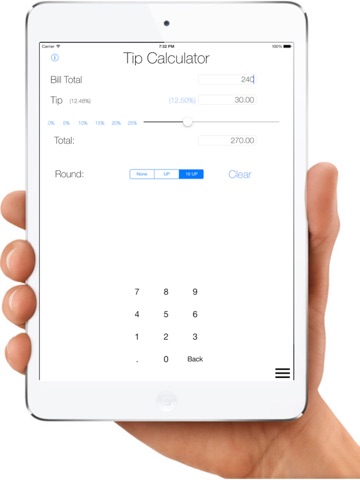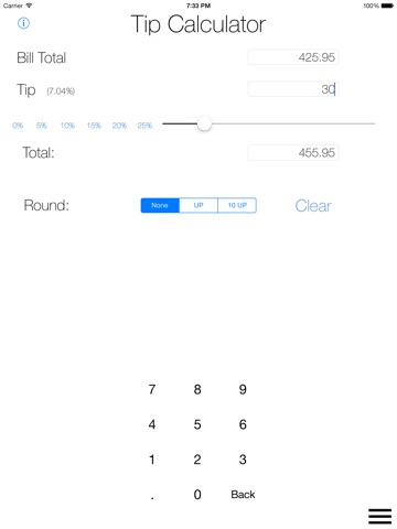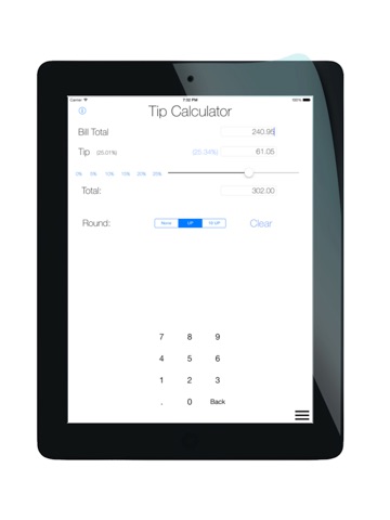 This is a simple, fluent and useful app that calculates Tips, Bill totals and Tip Percentages, all in real time.