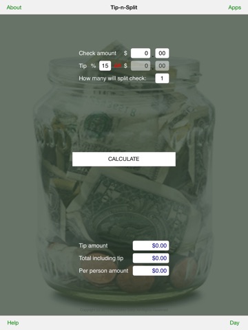 Keep your waitress happy and your service supreme by using Tip-n-Split to figure out your check total including the tip, in percent and dollar amount, and per person amount with precision, accuracy, and speed.