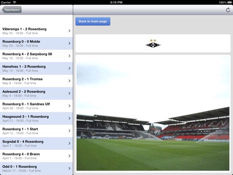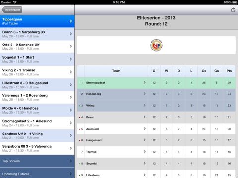 With this app you can also check all the stats for all the teams in the Norwegian Tippeligaen football competition (Stromsgodset, Rosenborg BK, Viking FK, SK Brann, Aalesunds FK, Haugesund FK, etc.)