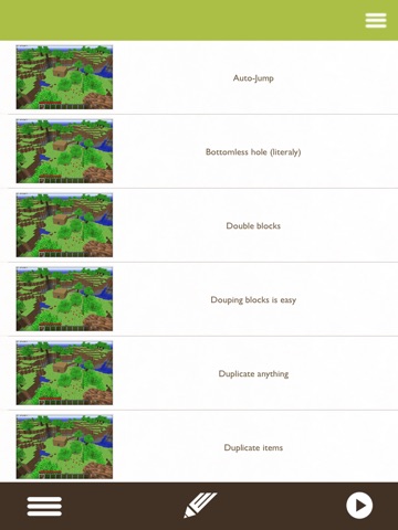 This app provides a Furniture Guide, Seed Database, Day/Night Clock, Recipe Tool for Minecraft. Theres more though! Also included is a complete guide, cheat section, video guide section and achievements! Dont buy multiple apps when this app is the ultimate FREE guide for your favorite game.
