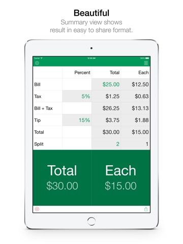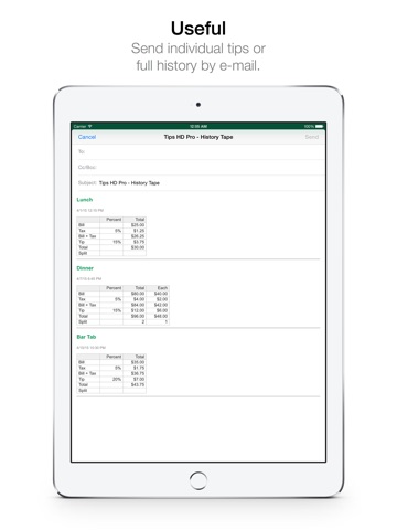 - Tap "Share" to send or save your tip calculation to the History Tape.