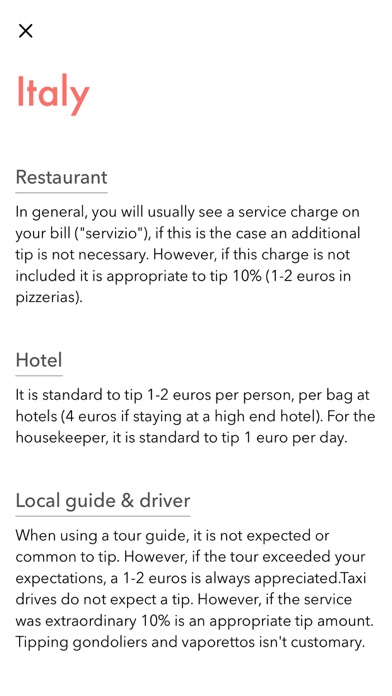 • The world’s most comprehensive tipping etiquette database – no country left out!