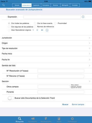 La app Tiranonline le permite acceder al Buscador General para la obtención de documentación en toda la Base de Datos y sus recomendaciones y a los Buscadores avanzados por tipo de documento (jurisprudencia, legislación, formularios, doctrina y bibliografía) con todos los filtros que ya existen en la versión web.