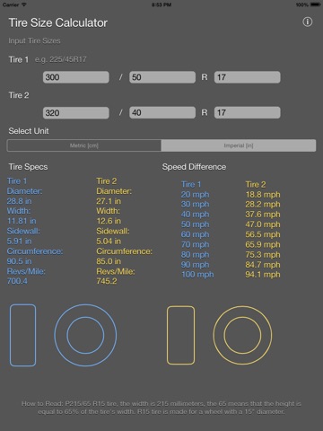 A very useful tool when searching for tires that are a different size then stock. Enjoy this app for all your tire size comparison needs.