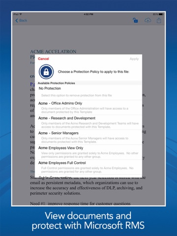 SUPPORTS MICROSOFT RMS for iPhone and iPad