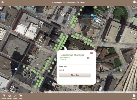 - Add new tree sites to the map with a simple drag and drop.