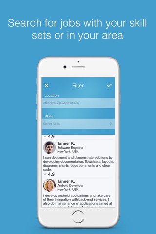 How it works: Client logs in, creates a project, selects skills required and posts to the feed. Tech logs in and based on the skill sets selected in his profile, is presented with open projects. Its that simple. The connection is made.