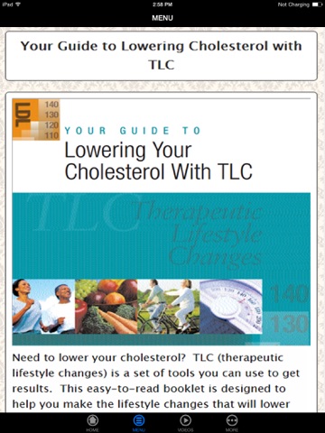 This app talks about the TLC diet that lowers cholesterol level. T his will really help people because it is a heart-friendly diet. Lifestyle modification is a major concern in this kind of diet to achieve a better and healthy living. Theres so much more that you can learn on TLC Diet.