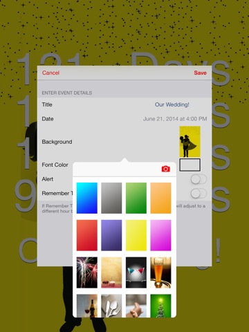 New! Upgrade tminus and use your own pictures as backgrounds! The many built-in backgrounds are still completely free!