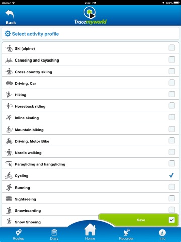 If the internet connection is not available it can work fully offline and save the performance on the device. When the internet connection is back you can upload your workouts on tracemyworld.com where they are turned into **real money discounts** in the online shop.