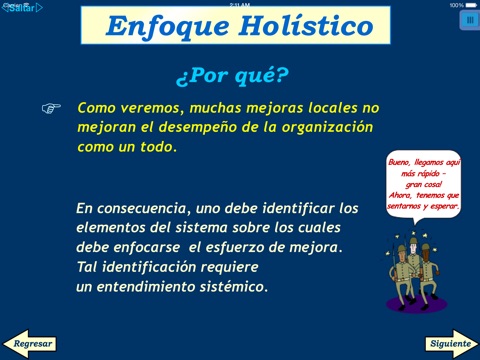 Esta herramienta de aprendizaje es una presentación interactiva que contiene el conocimiento detallado de la aplicación de la Teoría de Restricciones para el área de operaciones. Incluye ejemplos, casos prácticos y simulaciones.