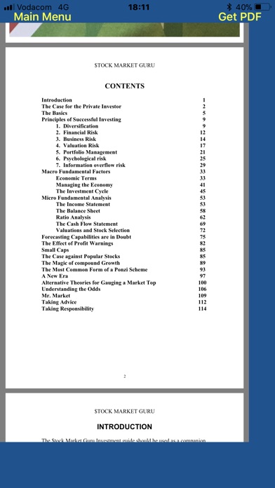 This Pro version includes a 100 + page PDF document that will answer all of your investment questions. The guide is written for Private Investors to ensure that they will be able to compete with the Professional Investor. It includes the Principles of Successful Investing. As well as a brief overview of the Macro Fundamental Factors; ie the economy. It will teach you how to do a detailed analysis and ratio interpretation of the financial statements. Included is a relatively easy method of calculating the value of a stock and how to select the correct stocks. It furthermore covers many diverse topics that will demystify the stock market. Get your Investment Guide and become a better investor!