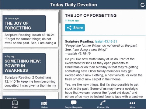 This app is great! I read it every night before I go to bed and its so easy to understand. Easy and simple layout. Great to have when traveling. I cant access it for the pasy week. Dont know if its bc the new iOS. Would be great if u can fix it.