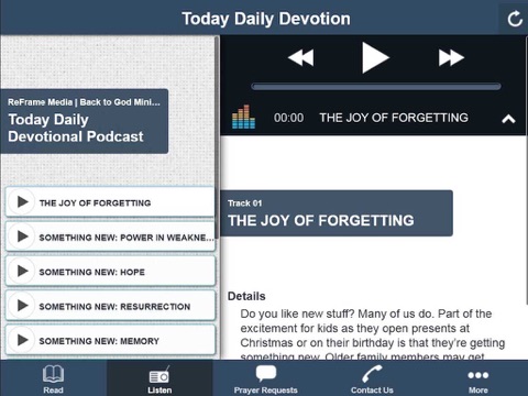 Very clear, u can read or listen while u drive, only 2 min a day, very good thoughts to start your day! I like reading and listening, the last 2 days I havent had the audio available, but it is so worth it! Believe me!!! Specially to keep me concentrated to read a devotional before going to work at 6am it has to be good!