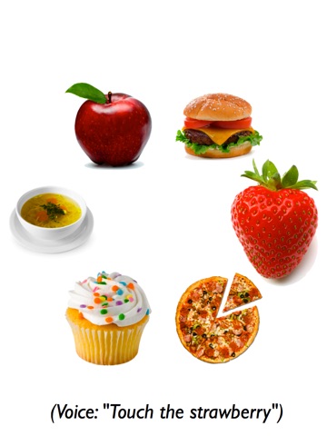 A welcoming mother’s voice asks your toddler simple questions, prompts your toddler to touch the right answer, and encourages your child for getting it right. Every few questions your toddler will win a small prize for extra encouragement. Most toddlers play the game for long stretches, and will quickly learn food words.