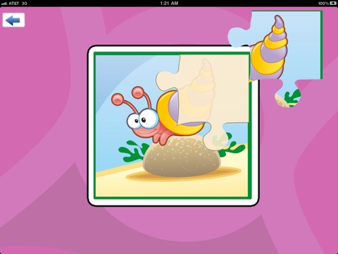 In addition to the matching game, there are also puzzle challenges that appear after three correct matches. Each puzzle is split into four pieces and the child is assisted in placing the correct piece by the location blinking as they drag the image around the screen.