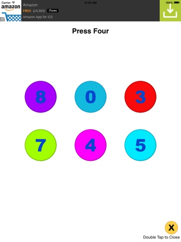 This app includes 3 game modes (colours, numbers and animals) - the user is presented with three choices and asked to choose one. This is an amazing learning tool and can help with your toddlers early development.