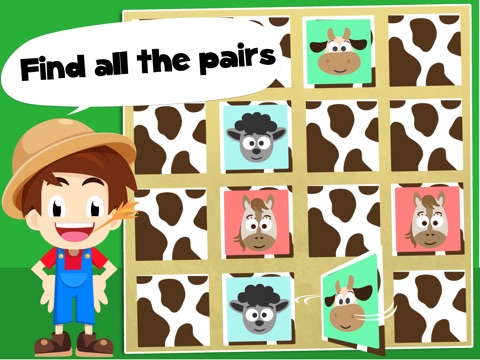 Your child will love to recognise the different farm animals. The funny cow, cute sheep and happy farmer will make the game a pleasure to play. We guarantee a smile on your toddlers face.