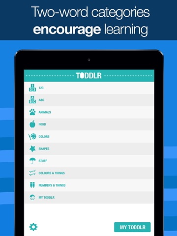 By long-pressing the screen you can jump back to the menu. Toddlr offers the ability for your preschooler to learn single word and double word phrases.