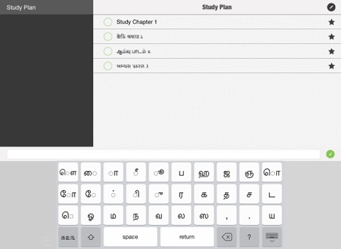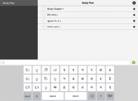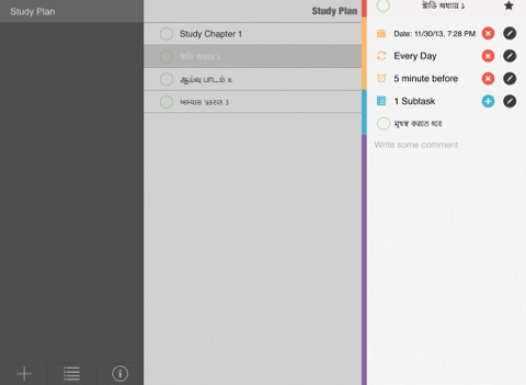 Custom Bengali, Tamil, Gujarati and Marathi keyboard designed for this app lets you write todo tasks directly in Bengali, Tamil, Gujarati, Marathi or you can quickly switch to your device’s built-in keyboard to write tasks in English.