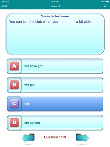This app focus in structure base test, each test has ten questions, each question has four answers to choose. At the end of the test will assess your score achieved, then you can learn from experience and improve their abilities through each this lesson
